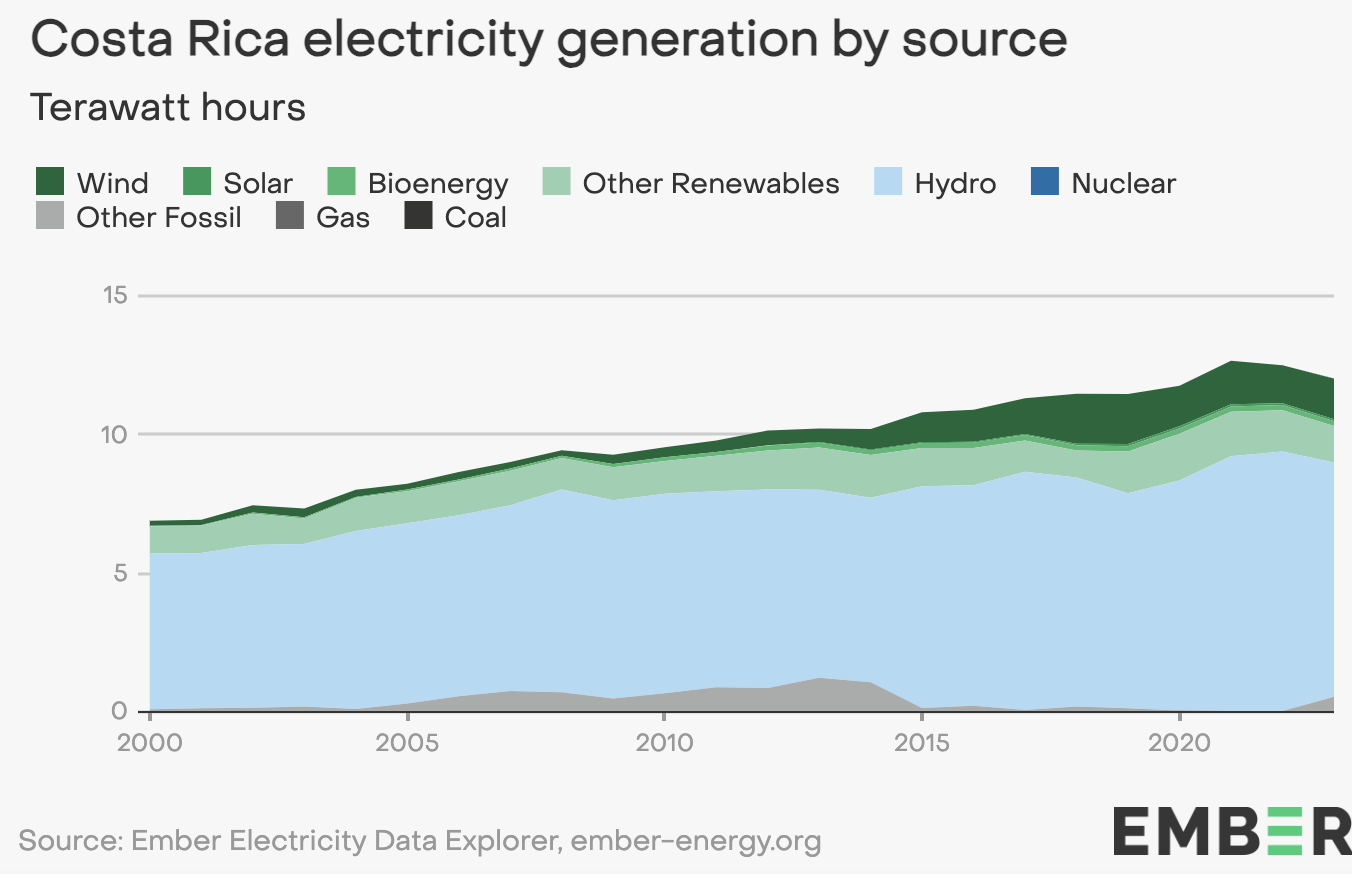 Costa Rica is widely regarded as a global leader in renewable energy.