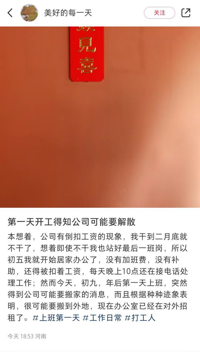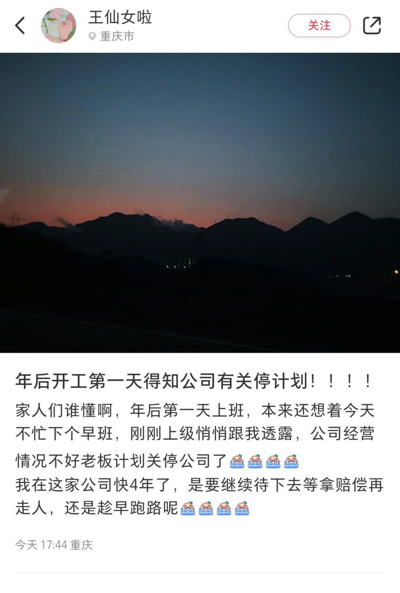 近日大量网友在社交平台发文称,他们在过完年开工第一天便被公司辞退。还有网友表示,开工第一天,到公司后却得知公司倒闭了。 https://t.co/i80H4bOctc