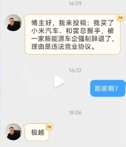 4月15日,一名博主发视频称,自己购买了小米SU7后被自己所在的极越汽车开除,理由是违反竞业协议,且没有赔偿金。 https://t.co/XG4djc6mBo