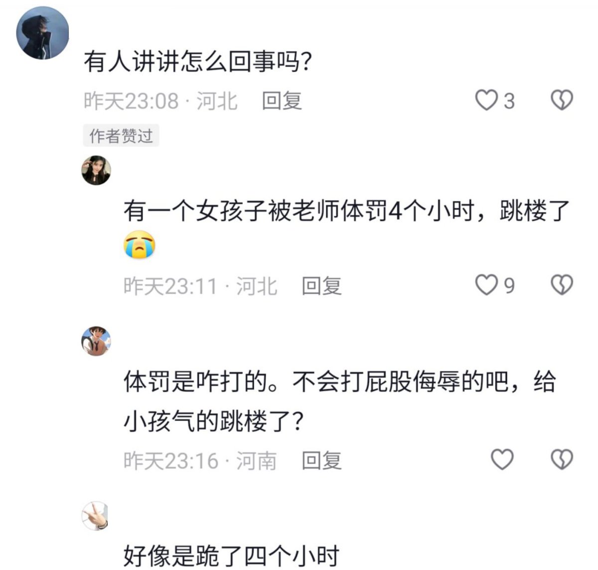 据视频拍摄者称,该校一名女学生被老师体罚4个小时,之后跳楼身亡。 https://t.co/whZCmg21ul