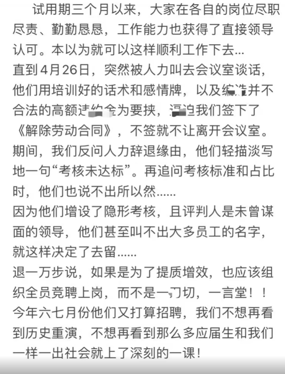 试用期一过,14名社招国企员工被集体辞退。