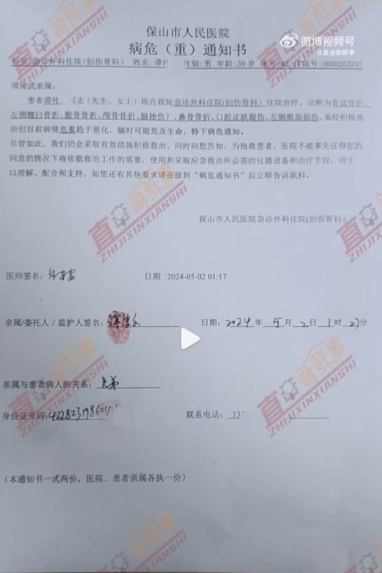 跳楼者弟弟发布了一段哥哥谭先生从工作台跳下前拍摄的视频,视频中,谭先生称他和雇方没有签署劳动合同,并表示如果自己遭遇不测,希望社会各界能多多关注。除此之外,弟弟还公布了一份谭先生的病危通知书。