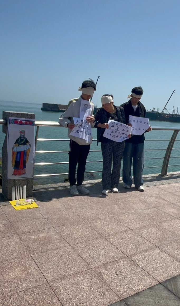 5月2日,山东省威海市,海难事故家属在码头悼念死者