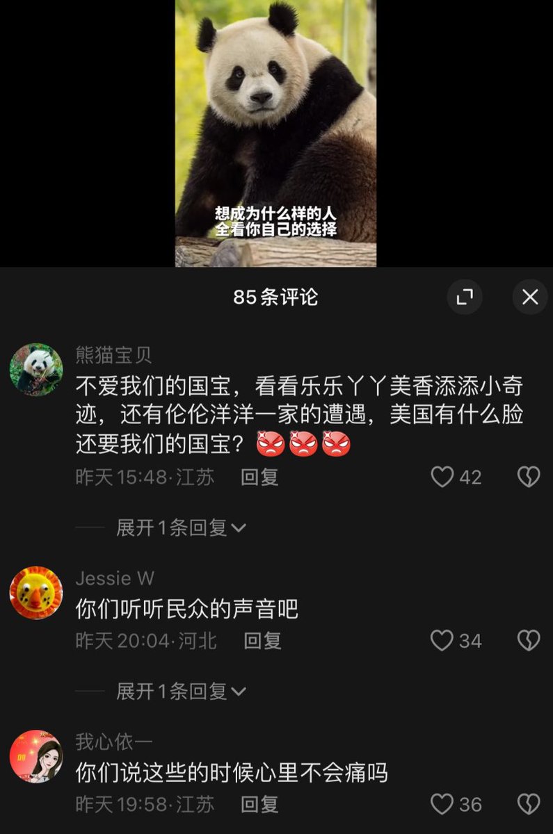 随着近期熊猫外交重启,“宝力”和“青宝”将赴华盛顿。热爱熊猫的网友们前往美国大使谢峰的相关视频下方表达不满 https://t.co/HfFL1s4vRn