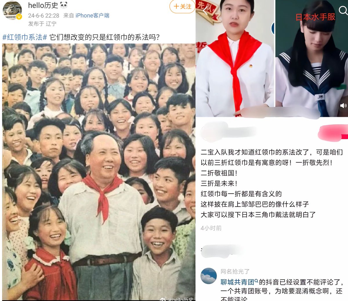 近日,山东聊城共青团发布一则教大家系红领巾的视频,被网友指出视频中的系法和日本水手服上的三角巾相似,并质疑共青团被日本间谍渗透。