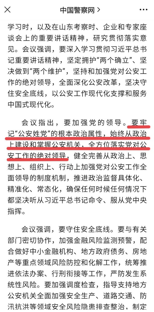 6月5日,中国警察网发文,公安部党委扩大会议召开,强调“公安姓党”。 https://t.co/tnhwa8J9la