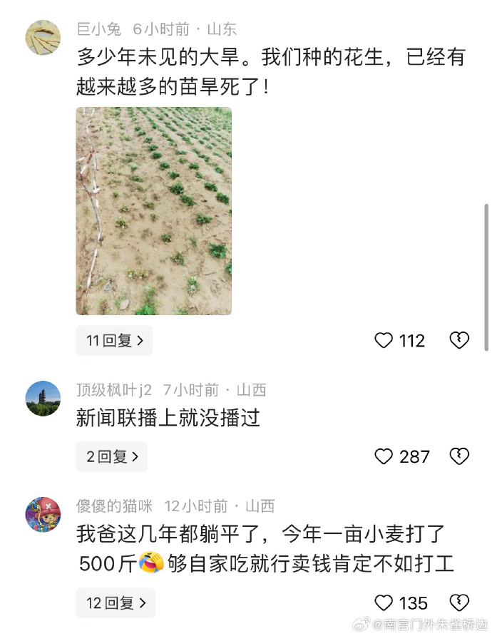 一位河南网友发帖称“家里20米深水井已经干旱了,地下水已经枯死了,所有人都在盼着下雨,可是一点雨的迹象都没有” https://t.co/kwLRofFfQY