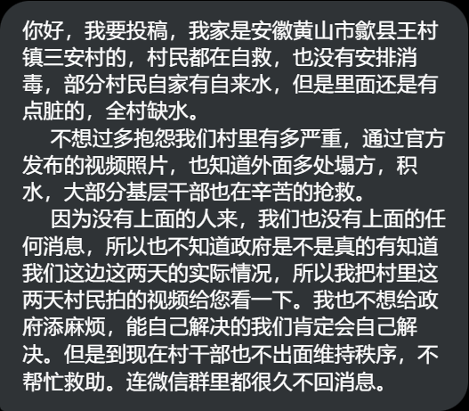 黄山歙县王村镇三安村灾区村民投稿:目前上面没人来,也没有任何消息,村干部也不出面,灾民全靠自救。 https://t.co/dlIHe2s9sK
