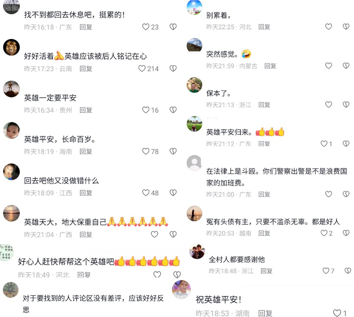 但是在相关视频下方,网友们集体声援霍文常,祈祷英雄平安,希望警方不要抓到他。