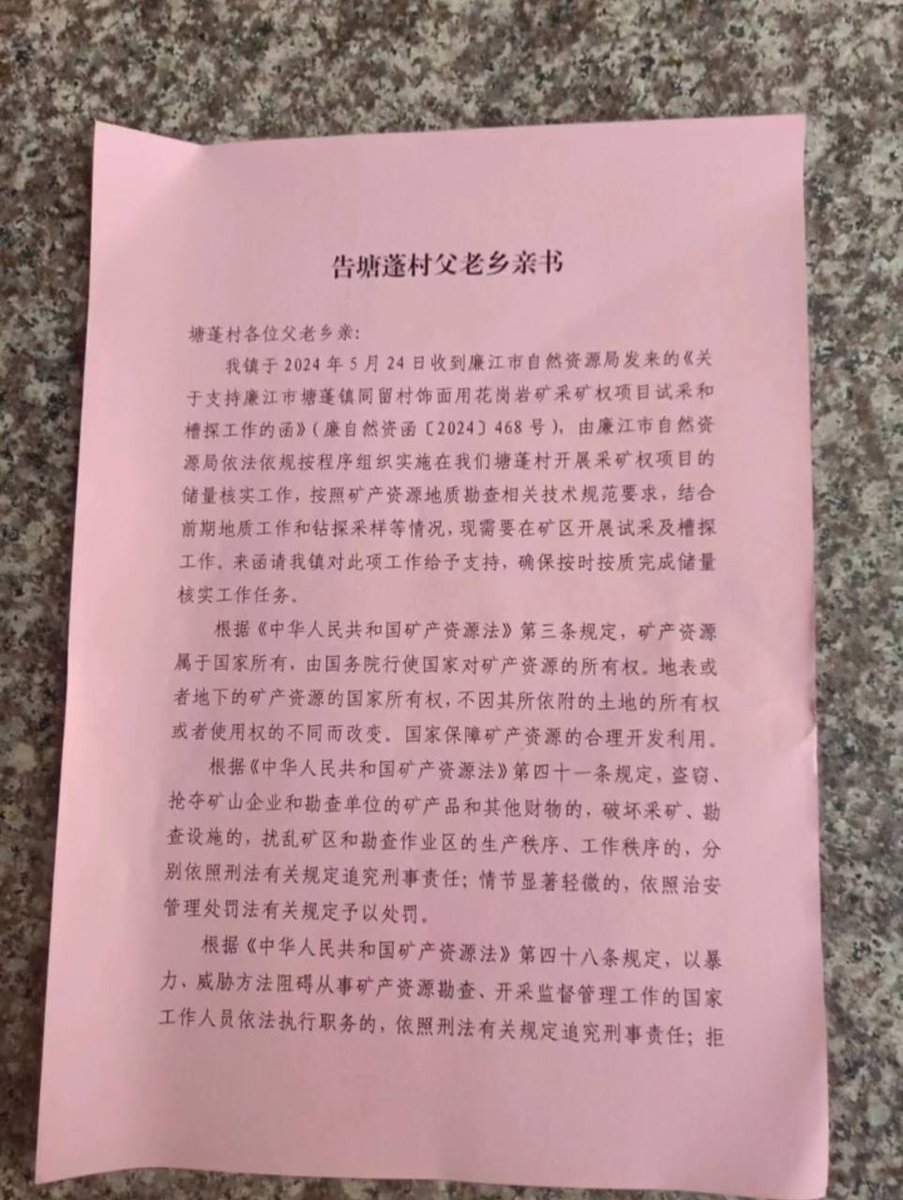 6月27日,广东廉江。塘蓬镇塘蓬村村民反映,当地有关部门未经村民同意,也没有矿山开采许可证,强行进山采矿,并派大量保安打伤多位村民。 https://t.co/rREGRyyEBH