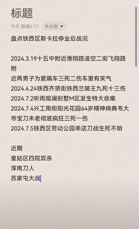 由于近期辽宁沈阳发生了太多偶发事件