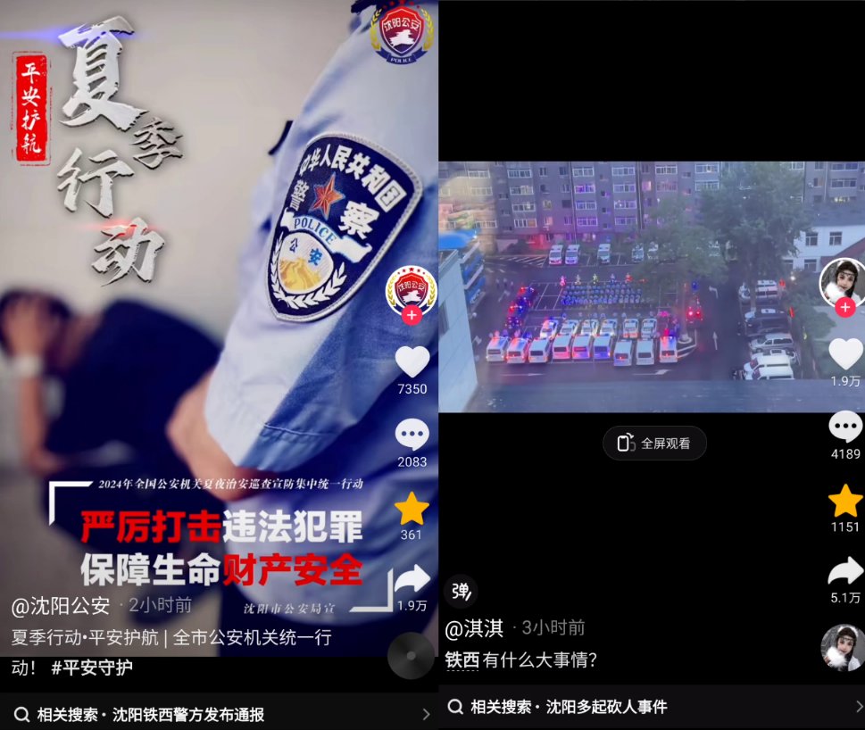 7月6日,沈阳开展夏日治安巡查行动,据网友拍摄的视频显示,当天铁西区街道停满了警车,警察前往每一个夜场进行宣讲。