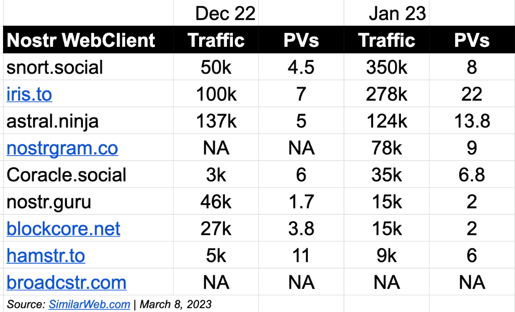 A state of the Nostr web client traffic.