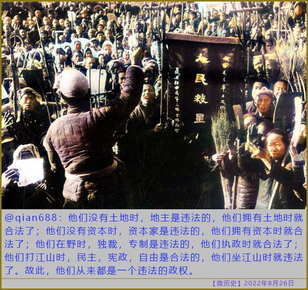 他们没有土地时,地主是违法的,他们拥有土地时就合法了;