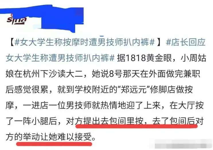 女大学生去足疗店按摩,热情的男技师为其服务,没想到在服务过程中却扒其内裤,遭到拒绝后男技师变本加厉,又让女大学生跪着背对男技师,然后用隐私器官贴在女大学生身上,这到底是怎么一回事呢?