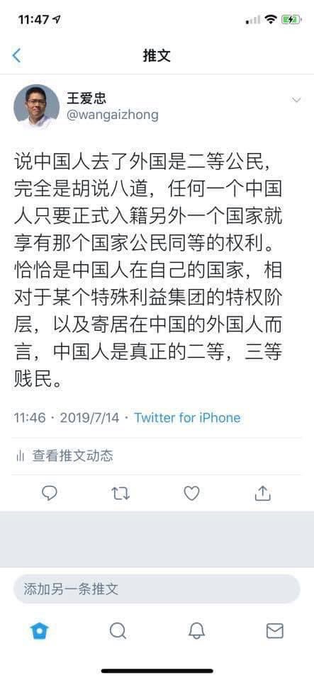 粉红爱说中国人到了外国还不是一个二等公民,想反驳一下,你TM在中国连公民都不是,只不过是个赵家奴隶罢了,神气点啥? https://t.co/j8yTcZkjh8