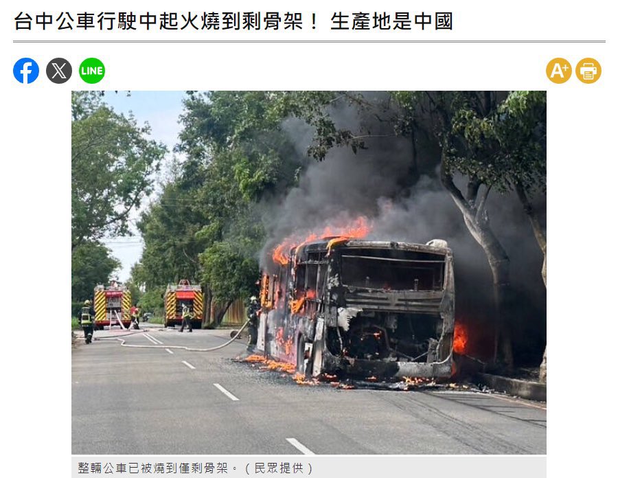 台中谁会向大陸买公車呐? 行驶路中烧到还剩骨架,有没有烧到他们?