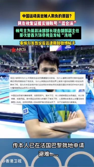 奥运大瓜: 国际泳联中国代表袁昊然,将申请法国的政治庇护,不再返回中国接受纪律审查和监察调查!