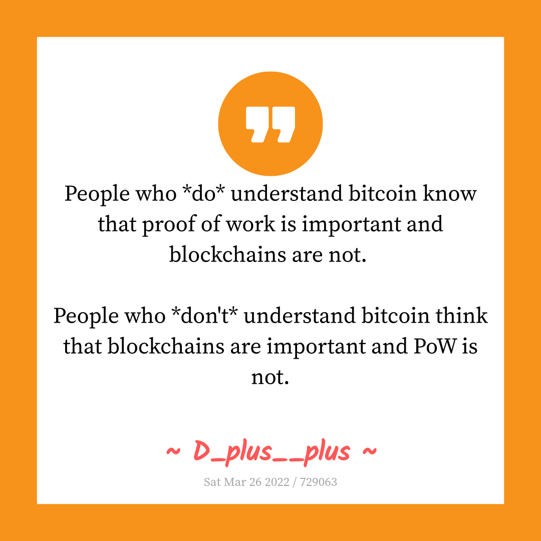 People who *do* understand bitcoin know that proof of work is important and blockchains are not.