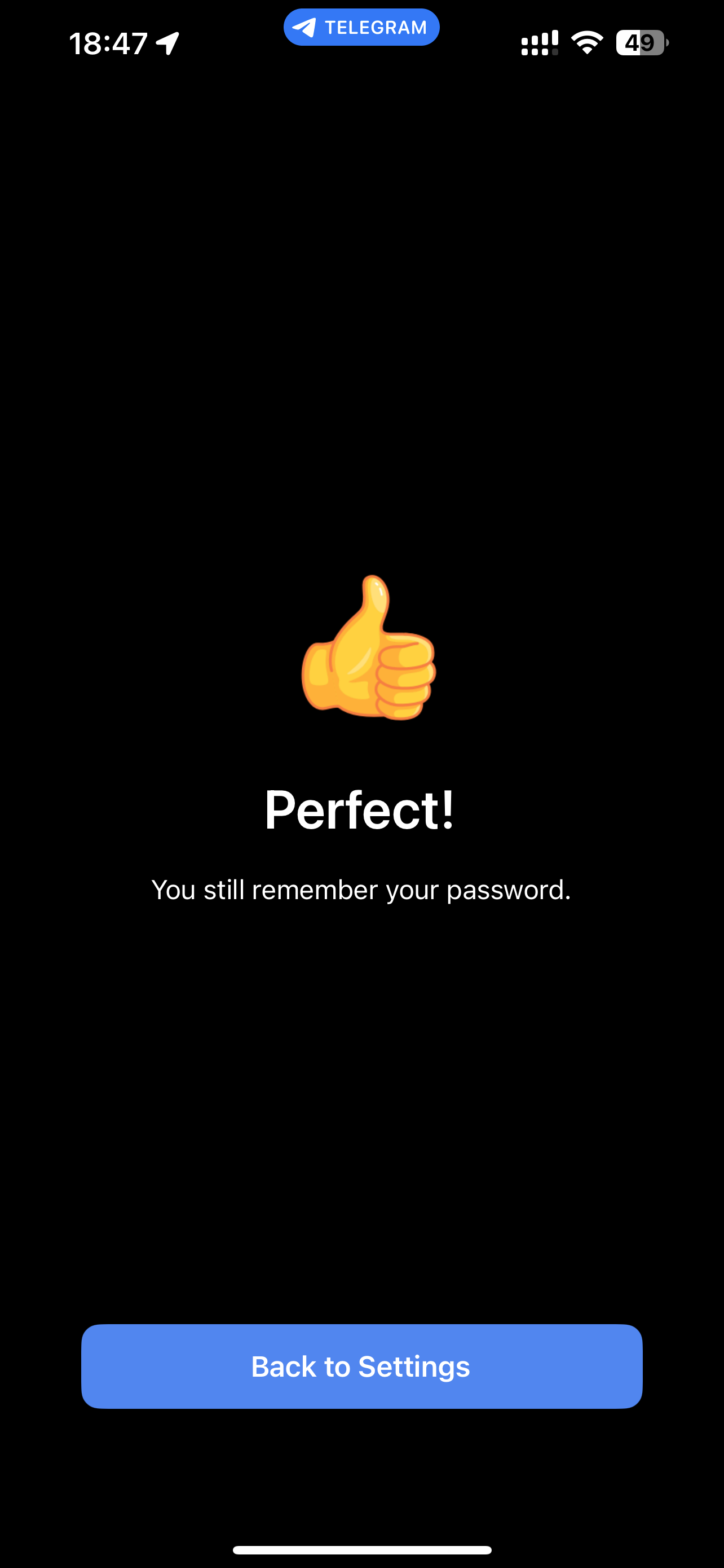 Telegramにパスワード覚えてるか?忘れたら大変やで」というテストをされた