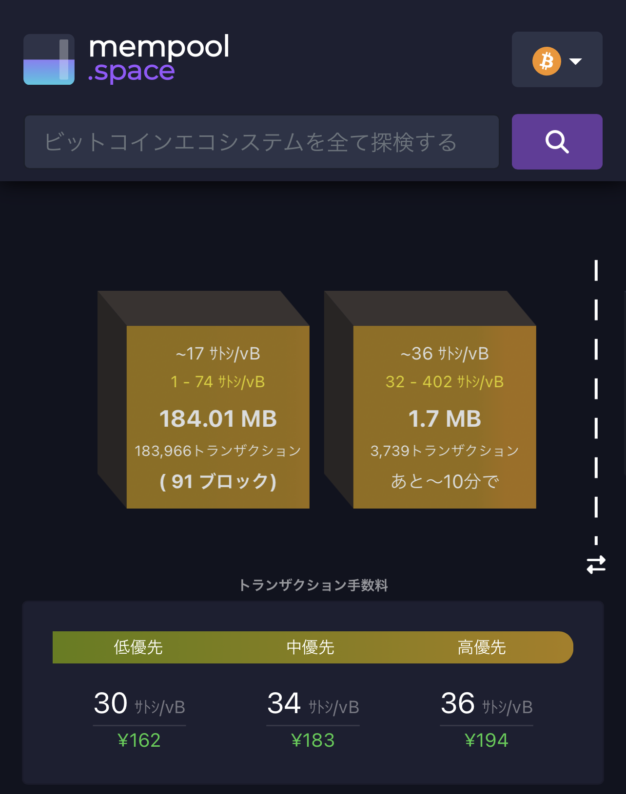 トランザクション手数料が恐ろしく跳ね上がっている…