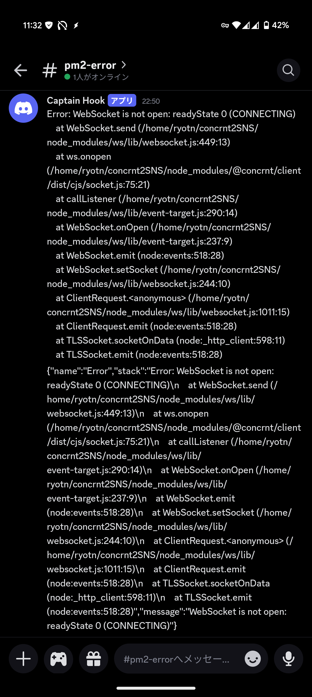 pm2でエラーでたらdiscordに通知するやつ、入れてみたけど良さそう