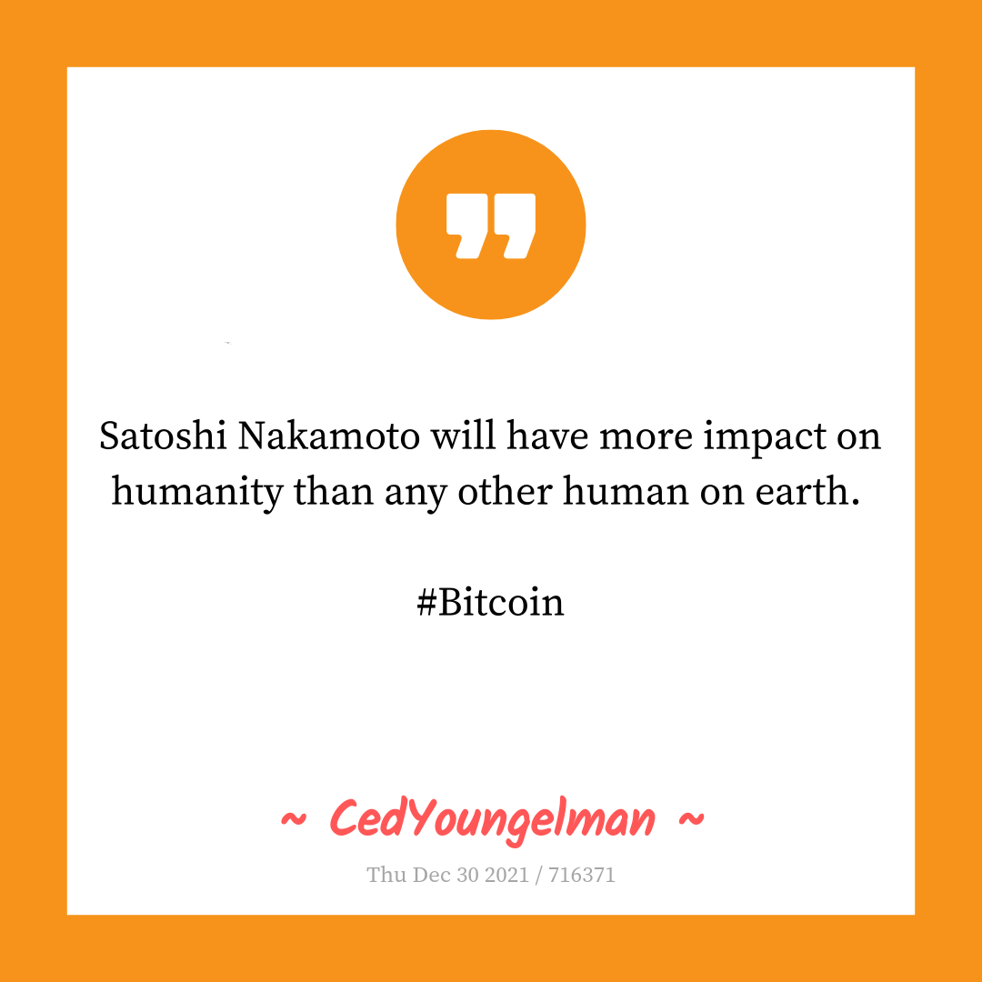 Satoshi Nakamoto will have more impact on humanity than any other human on earth.