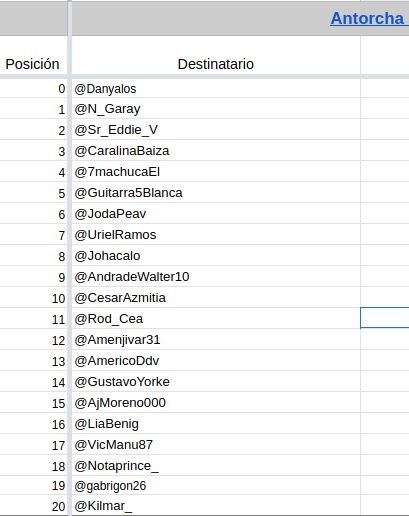 1) El que envía la Antorcha publica un tweet anunciando que la pasará al siguiente en la lista, mencionándolo (tag) para que sea notificado en caso de que no esté participando del Space https://t.co/bXgfrGThBy