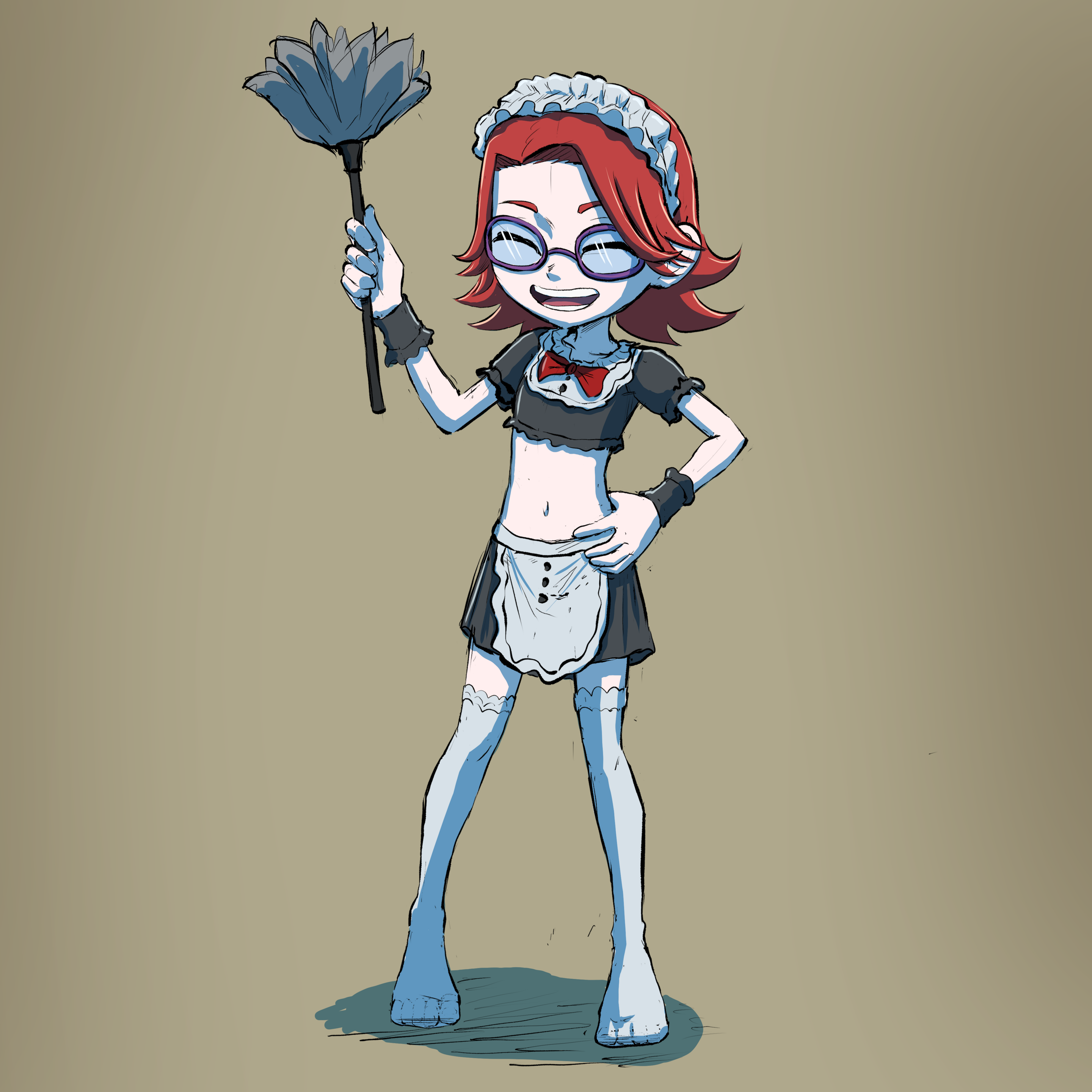 #cute #maid #glasses #redhead #belly #loli #SFW #ear #openmouth #sketch #digitalart #socks #bowtie #lolitober2024 #halloween #skirt #tummy #hospitality