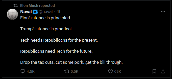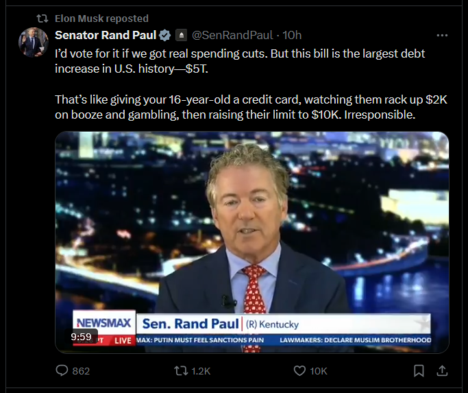 Musk also reposted https://x.com/SenRandPaul/status/1930641549781577798