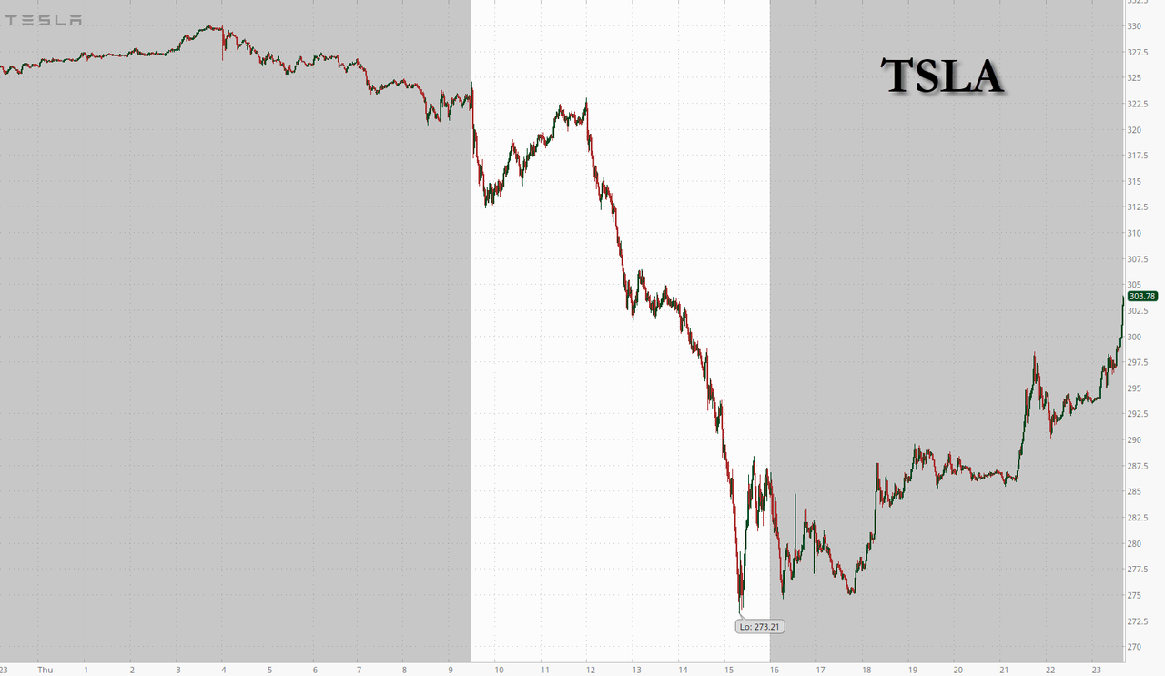Meanwhile, shares in TSLA are down 16% as the market cascades lower. Fun fact, Tesla was the most bought retail stock over the last week.