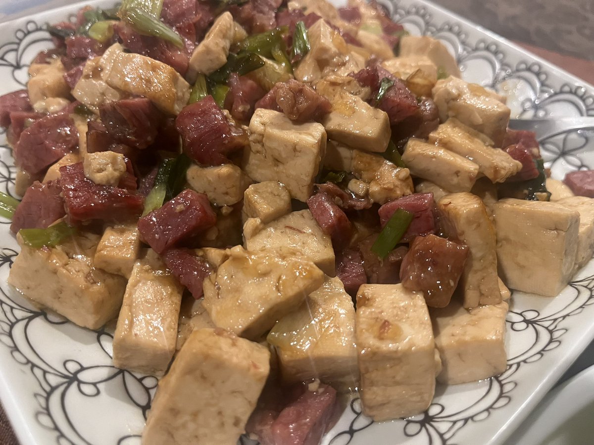 我今天的早饭,保婆豆腐。本来想叫保公豆腐。但是在汉语里公也主要是别人的尊称,用来自称有点太不好意思了。 https://t.co/FJguTCsgmX