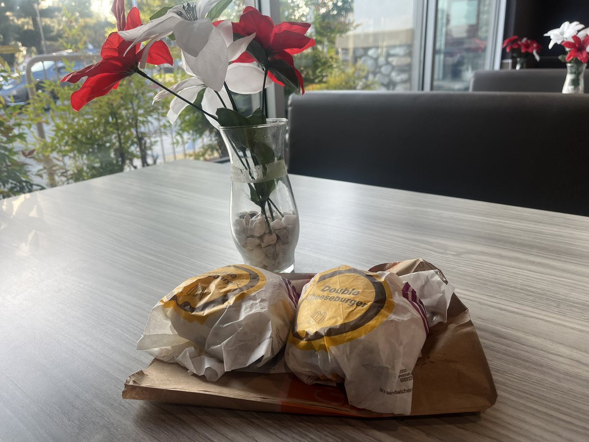 一下午饥肠辘辘,好一阵子都闻到一股烤串的味道,也不知道是不是我思念的错觉;后来又好想停车在路边的空地,变出一口锅来,做一锅疙瘩汤吃。最后终于吃上了我心爱的麦当劳,这家每桌上都有一瓶花,让我真有满足和幸福感,根本不在乎是真花还是假花,毕竟昨天在奔驰4S店里发现他们放的也是假花。 https://t.co/WGOROSZeh7