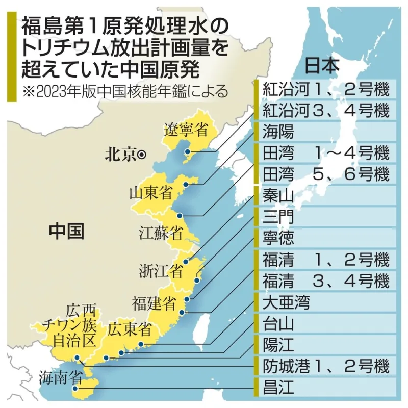 中国最新版核能年鉴显示,在2022年,中国至少有12个核电站所排出的氚含量超过福岛处理水的计划排出量