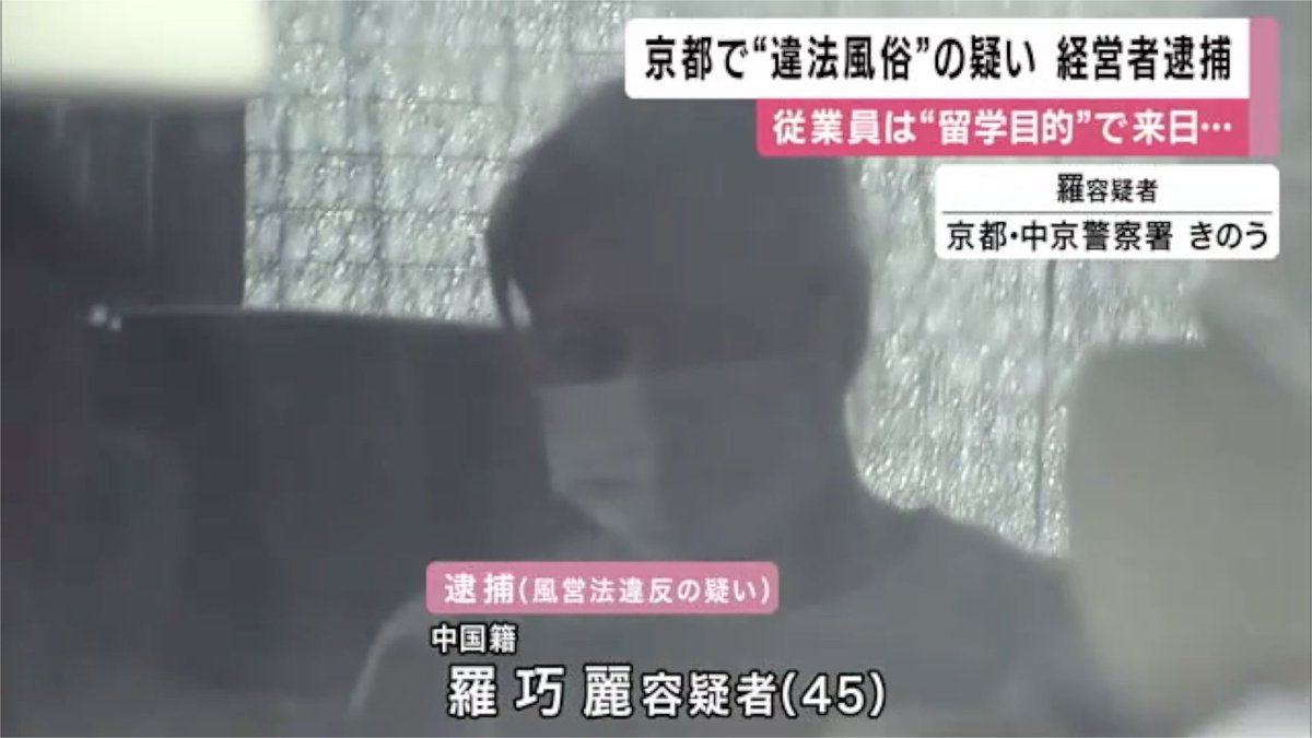 京都的中国风俗店老板羅巧麗被捕,她涉嫌雇佣中国女留学生从事风俗行业,以「男士美容」的名义提供性服务