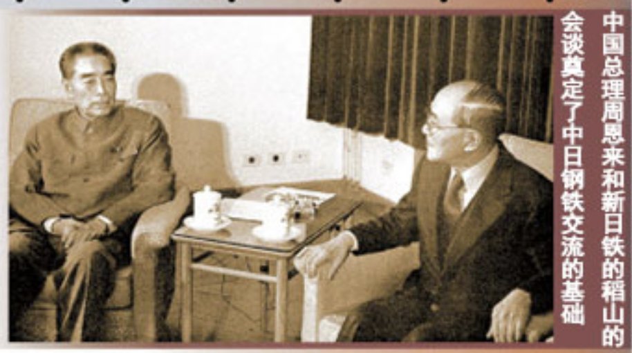 1972 年,周恩來在與新日鐵社長稻山嘉寬會談時,後者決定為武漢鋼鐵廠提供協助,承諾建設鋼板生產線。