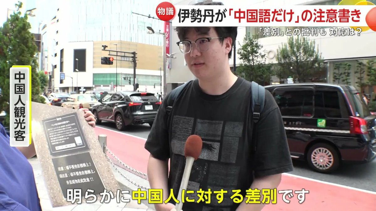 日本記者就此採訪中國遊客,一位中國男遊客稱「這明顯是歧視中國人,中國人在中國都不坐樓梯上吃東西」