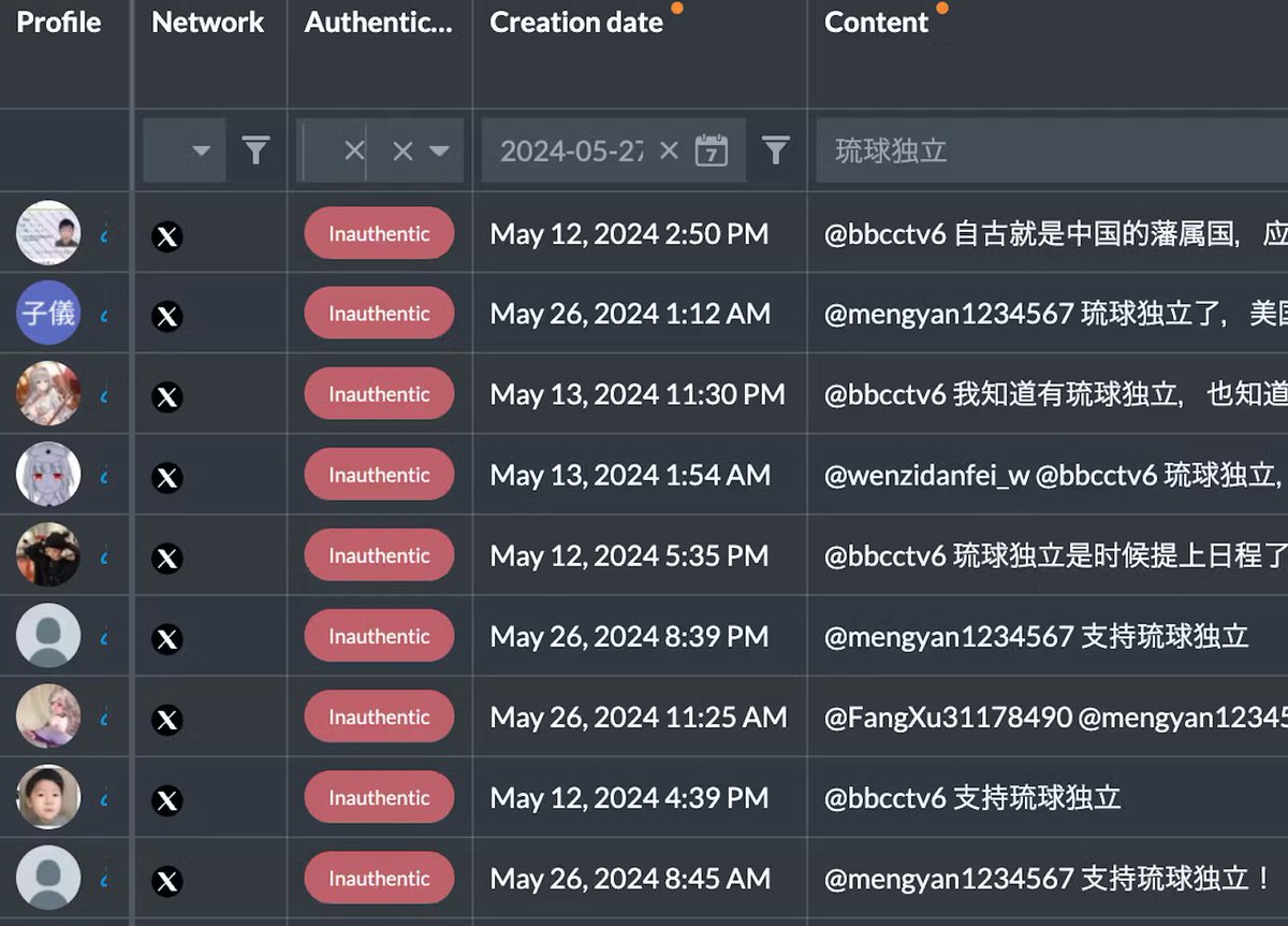自從去年習近平聲稱沖繩與中國的歷史淵源後,這些賬號就大批破土而出了 https://t.co/HY8DPeM5R7