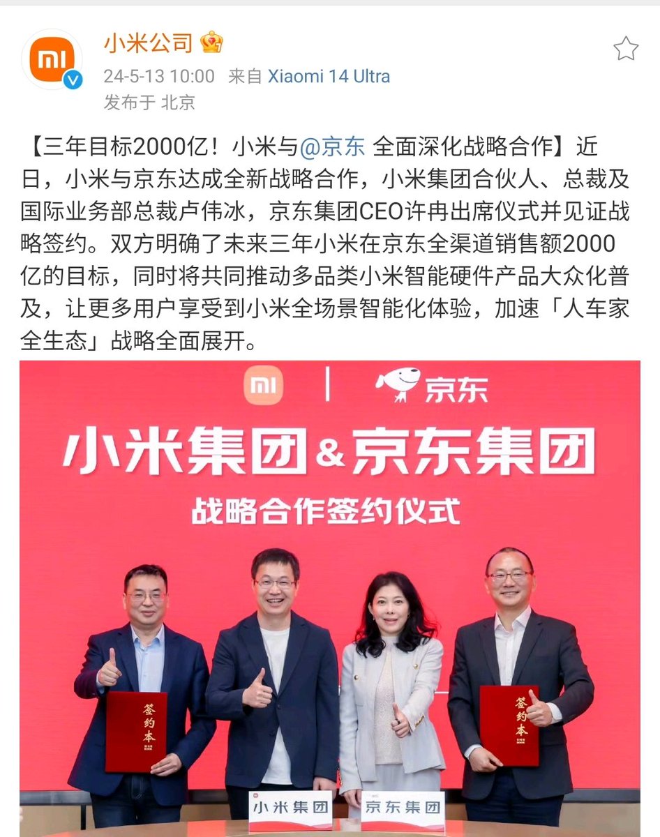 【三年目标2000亿!小米与京东 全面深化战略合作】