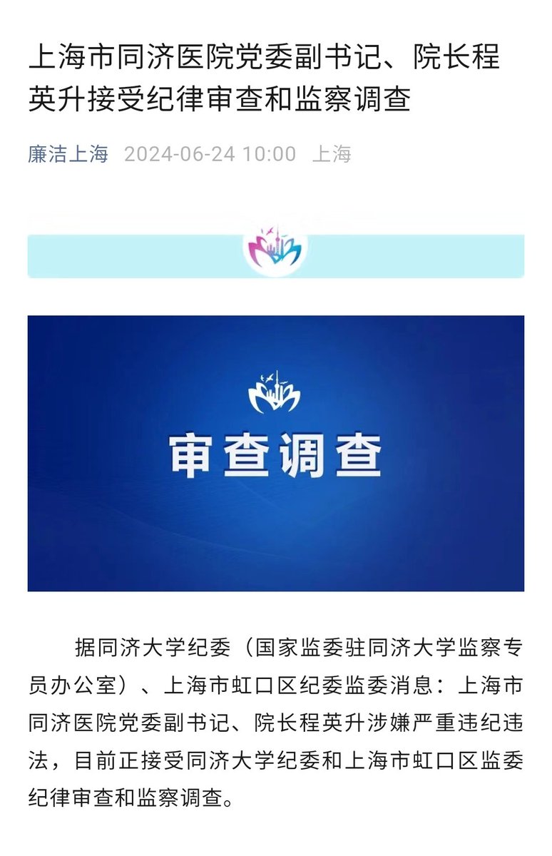 上海市同济医院院长程英升被查 https://t.co/HHfCijbAua