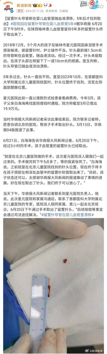 留置针导管在婴儿血管里漂移5年 https://t.co/Fjb93zKhuv