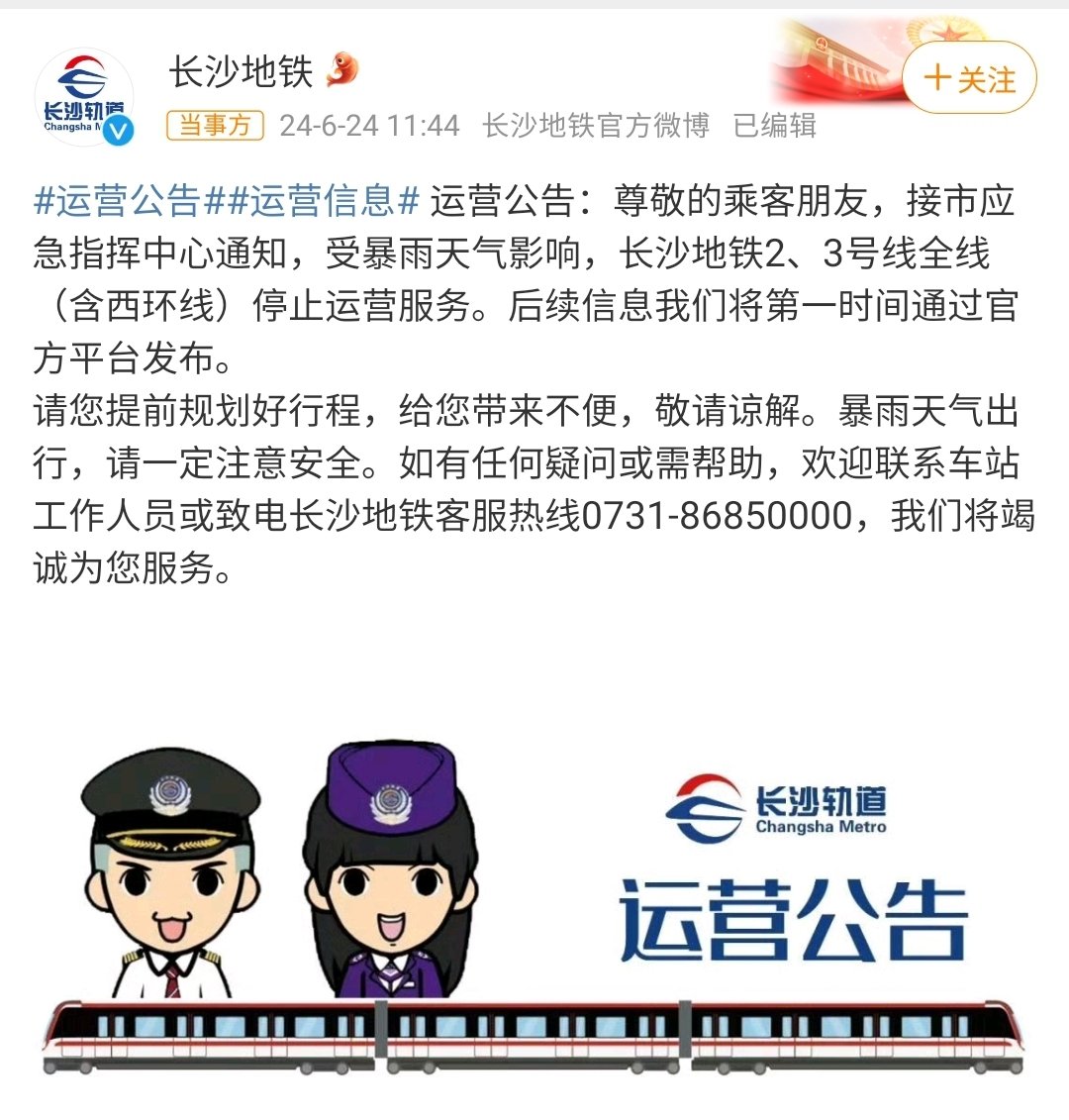 长沙地铁2号3号线因暴雨停运 https://t.co/yY4hcx2Vyo