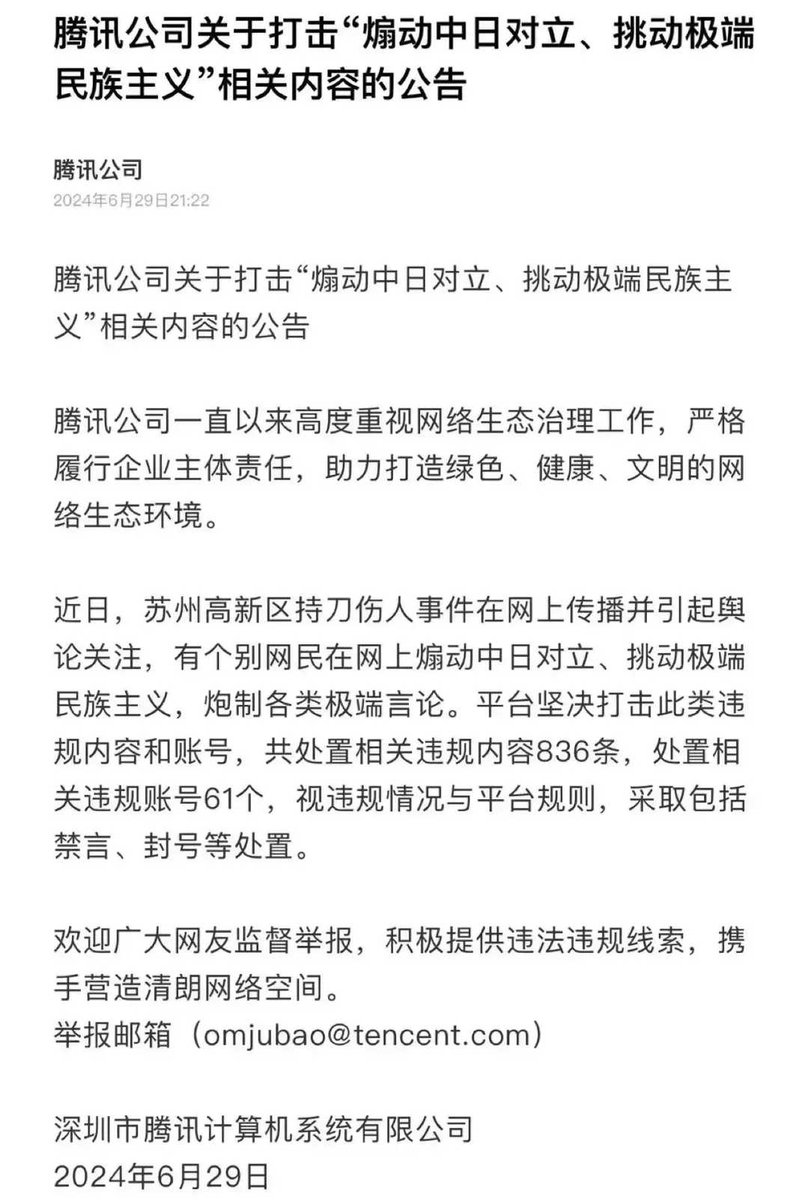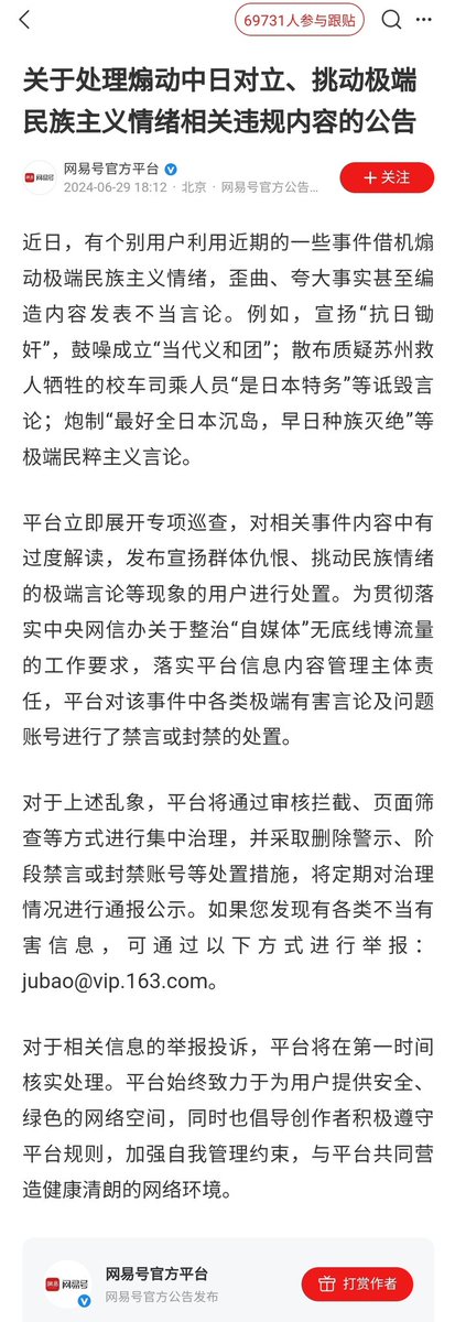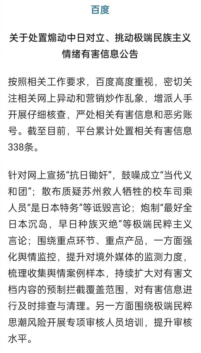 各大网络平台同时出手处置“煽动中日对立、挑动极端民族主义情绪”的网络言论和账号。 https://t.co/yXKrRLf3iZ