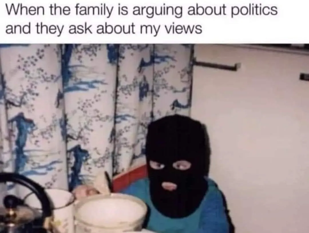 Everytime I meet new people its all about chilling and having good times until the "state=mafia" argument is touched.