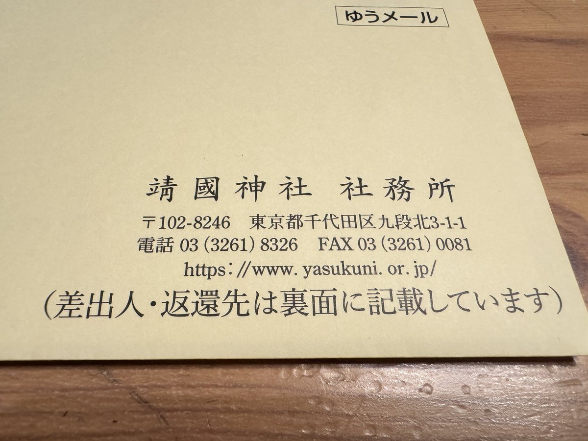 靖国神社来信了😗 https://t.co/EmDsFlDrz0