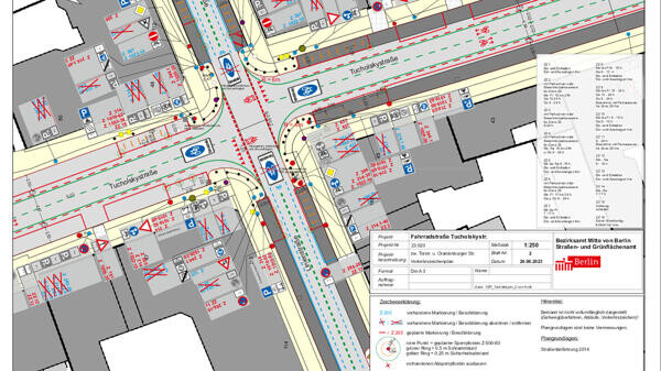 Eine Fahrradstraße in der Berliner Tucholskystraße soll an einer Kreuzung einen der größten Unfallschwerpunkte im Nebenstraßennetz entschärfen.