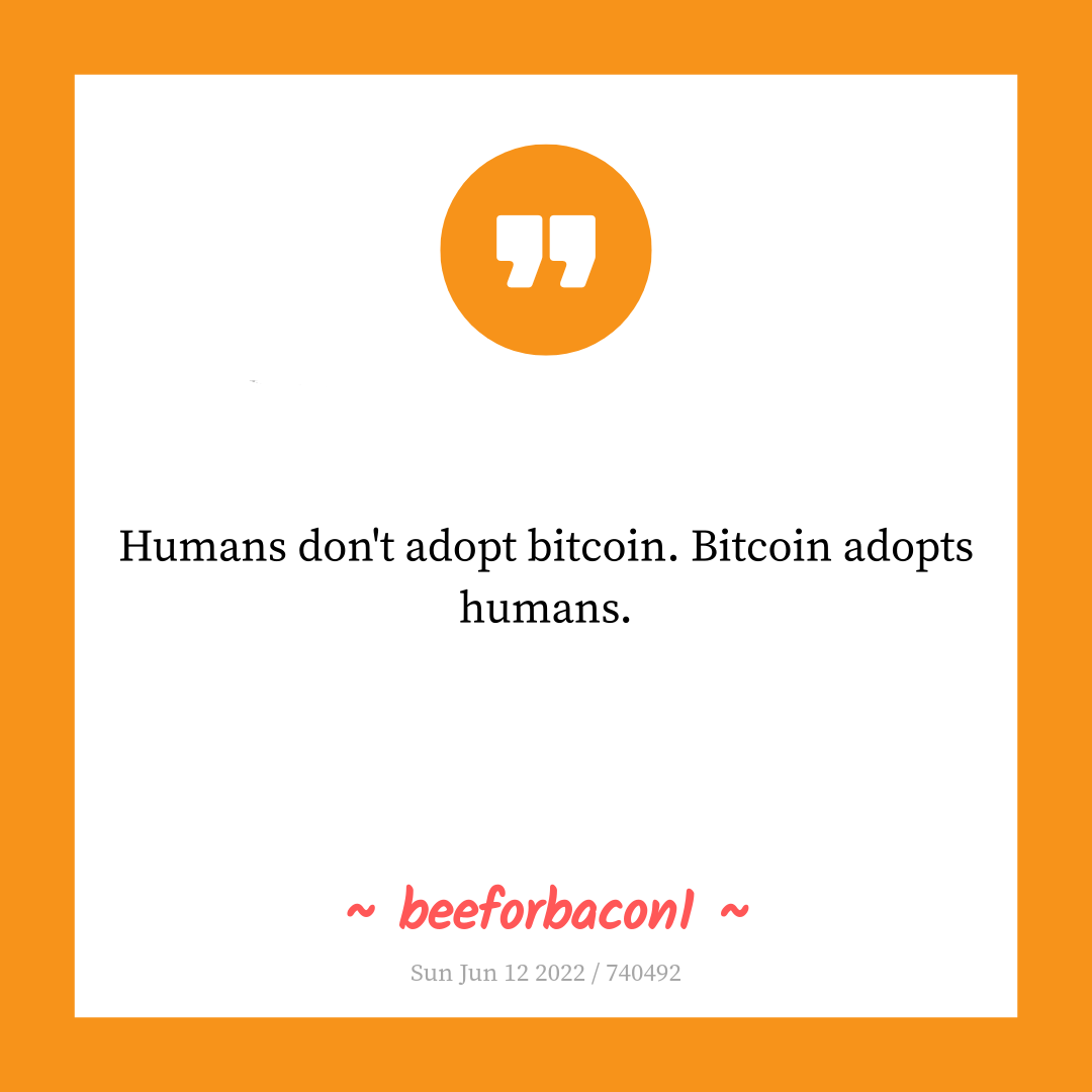 Humans don't adopt bitcoin. Bitcoin adopts humans.