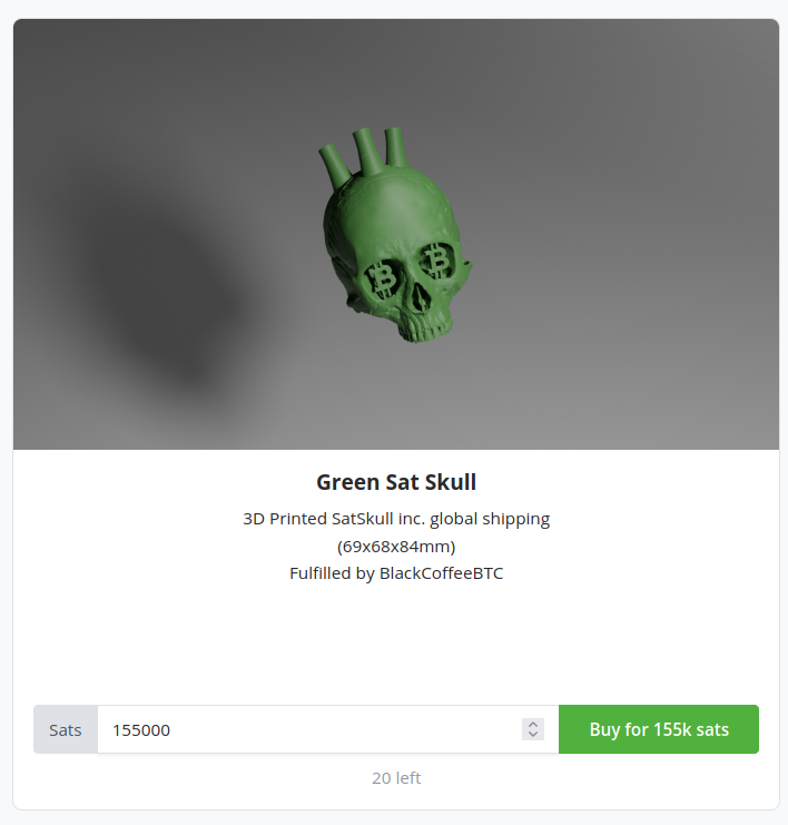 Sat Skull SALE - Thanks to fulfillment by blackcoffeebtc the sat skull is now available for 155k sats including global shipping. Shipped in order or purchase.