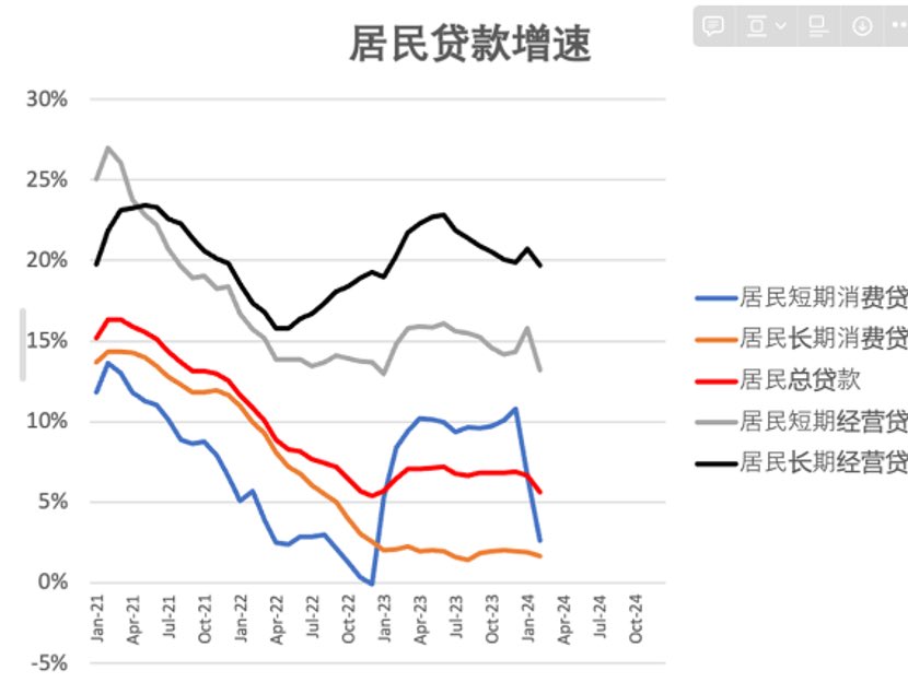 居民经营贷增速极快,并不是居民忙着做生意,而是经营贷利息远低于房地产按揭贷款,很多人用房地产抵押,借了经营贷替换按揭贷款。