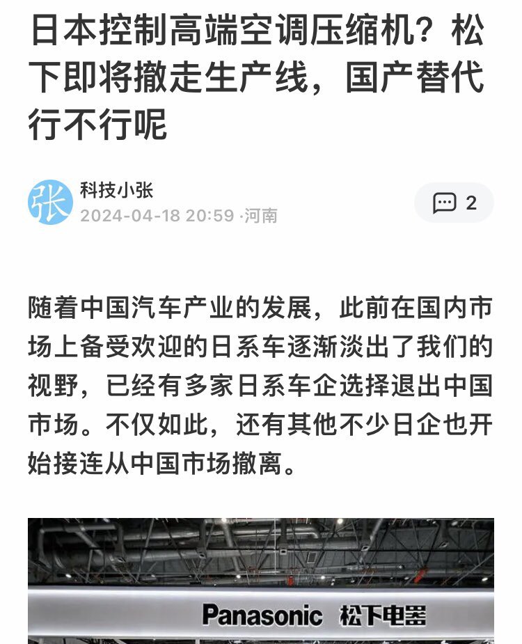 日本松下宣布撤走广州的压缩机生产基地!接下来又是大量失业,中国空调行业压缩机也要被卡脖子 https://t.co/iRLKEnpYKN